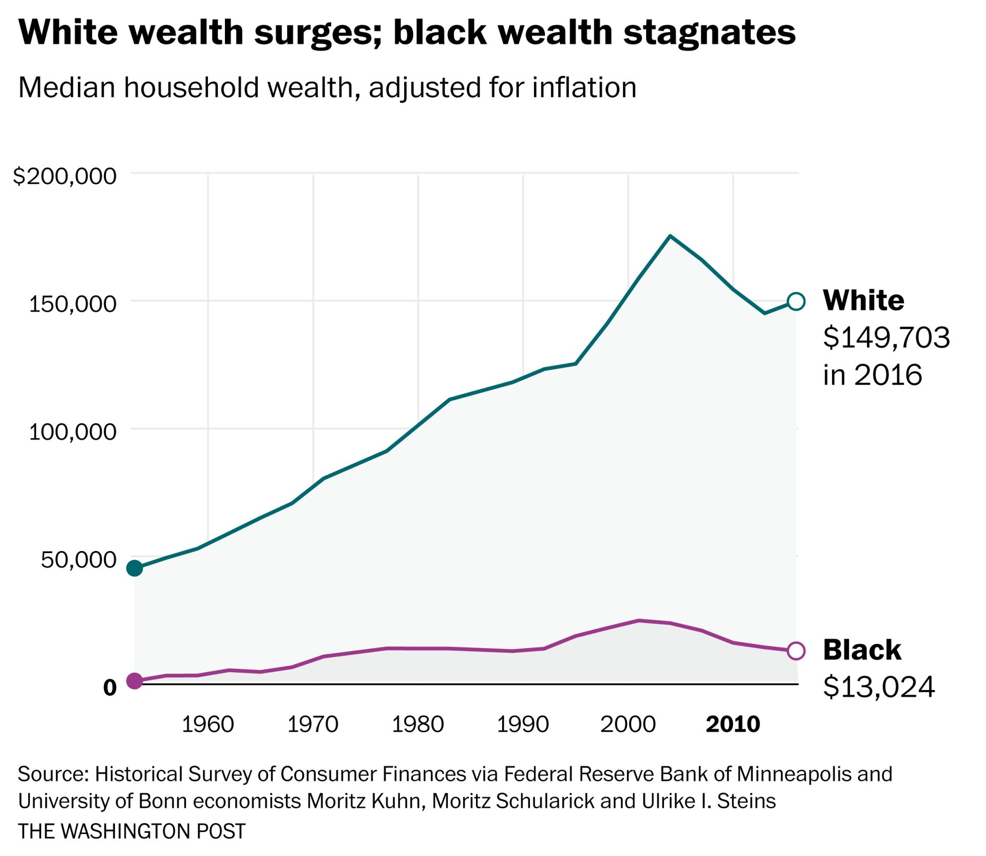 The history of redlining and systematic oppression allowed white families to build and hoard wealth in America, while these systems left lasting effects on redlined communities. These include underinvestment, lower property values, and fewer resources like grocery stores, health clinics, or well-funded schools. This intentional system results in black communities enduring higher pollution, lack of access to healthcare, and stress because of economic disparity.